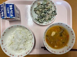 今日は「宮崎の食材を食べよう!」メニューで、宮崎牛をつかったビビンバと宮崎で生産されたきんかんが出ました。日本一の宮崎牛だけあって、とってもやわらかくうまみがたっぷりで、ご飯にのせて食べるときは幸せいっぱいになりました!きんかんはとってもあまくてびっくりしました!