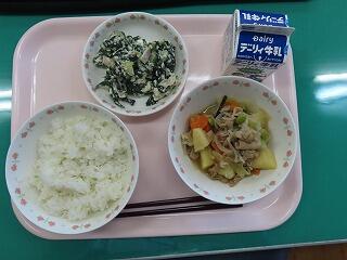 麦ご飯 豚肉じゃが 洋風白和え 牛乳