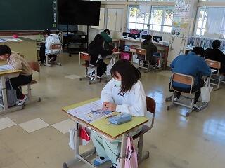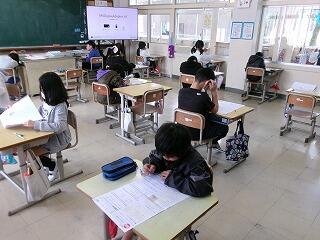 4年生は教室で理科のテストを受けていました。これまでの学習を思い出しながら、正解を導き出そうと一生懸命に問題と向き合っていました!きっと、いい点数をとることでしょう!