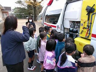 野尻分遣所の皆様には訓練後に、1、2年生児童に救急車の中を見学させていただいたり、救急車のもつ機能について説明していただいたりしました。重ねて感謝申し上げます。