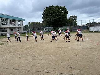 4年生は体育でベースボール型ボール運動の学習をしていました。まずは、ルールをしっかりならい、チームごとにプレーしていました。