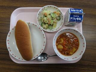 ポークビーンズは、白いんげん豆、グリーンピース、豚肉、ジャガイモなどが入っていて、爽やかな酸味を感じながら食事を楽しむことができます。サラダはサツマイモの柔らかな食感とキュウリのシャキシャキした食感のコントラストがとてもおいしいです。