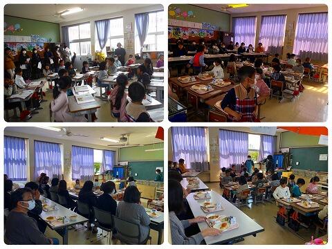 参観授業終了後、1年生の保護者を対象にした「給食試食会」を行いました。たくさんの保護者の方に参加していただきました。保護者の方が見守る中、給食準備を頑張ったり、食事マナーに気をつけながら食べる給食は、緊張しながらもとても美味しかったと思います。