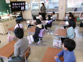 12月22日(金)、全校集会がありました。感染症防止の観点から、職員室と各学級をつなぐリモート形式で行いました。集会では、校外・校内行事にみんなで心を1つに臨み、1つ1つ大きな成果をあげ、たくさんの皆さんから「流石!野尻小!」と、お褒めの言葉をいただいたことを伝えました。また、冬休みの生活については、「楽」と「命」の漢字をもとに、「冬休みを楽しんでほしい、そのために、計画をたてよう!」「112の命を絶対にもって学校に戻ってきてほしい、そのために、冬休みのきまりをしっかり守ってほしい」と話しました。その後、教頭先生から、冬休みの生活について安全上、気をつけてほしいことについて話がありました。最後に、作品展で入賞した児童の表彰を行いました。