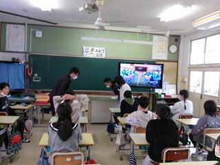予行練習の後の6年教室をのぞいてみると、タブレットで撮影した予行練習の様子を全員で視聴し、できていないところを確認して、証書もらいの特訓(練習)をしていました。