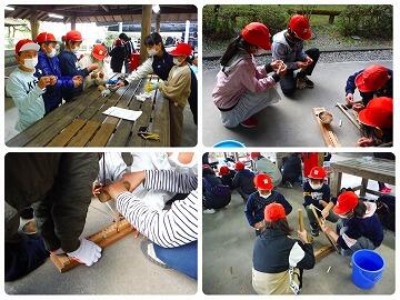 火起こし体験では、子ども達の力だけで火が付いた班もあり、みんな「凄い!」とびっくりしていました。その種火で竈に火をつけ、美味しいごはんが炊きあがり、自分たちの力だけでできたご飯を喜んで味わいました。