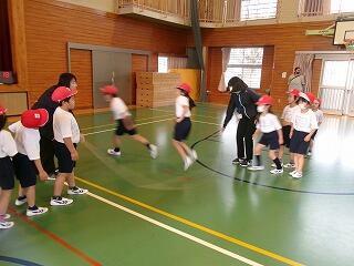 1年生は体育館で大縄跳びや短縄跳びの練習をしていました。みんな縄跳びが大好きで、時間いっぱいいろいろな技にチャレンジしていました!