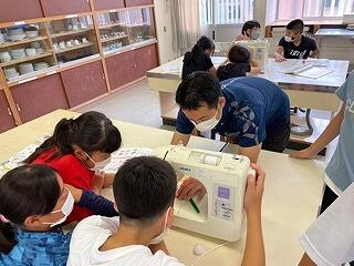 6年生は家庭科の学習で、ミシンに糸を通す勉強をしていました。針に糸をさすこと、下糸をつることに悪戦苦闘していました!とても集中していました!