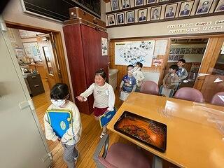 4月26日(水)、小学2年生が小学1年生をつれて学校探検をしました。この日に向けて2年生は校内の1つ1つの特別教室のことをアークシートにまとめていました。当日は1・2年生で5~6名の縦割り班をつくり、2年生が代わる代わる「この部屋は○○室です。ここでは○○をします。」等とちょっぴり照れくさそうにしながらも一生懸命大きな声で説明をしてくれました。1つ年上のお兄さん、お姉さんに学校のことを教えてもらい、1年生はとってもうれしそうでした。これからも小学校のよき先輩として、学校のことを進んで教えてあげたり、困った時には進んで助けてあげたりできる頼もしい2年生であってほしいです。