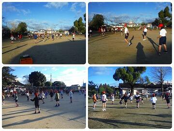 そして、クラスで「8の字跳びチャレンジ」。低学年は、大縄に入るタイミングも跳んで出る方向も難しく、先生方が声をかけながら練習していました。高学年になると、「1!2!3!・・・」と数えたり、「はい!はい!はい!・・・」と入るリズムをとったりしながら、協力して長く続けることにチャレンジしていました。