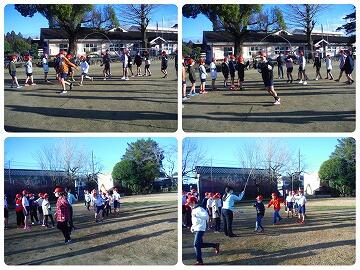 まずは準備運動。体をほぐしてから、それぞれなわとびの練習を始めました。前跳び、後ろ跳び、二重跳び、二重あや跳びなど、それぞれ練習をしました。軽やかに跳んでいる児童もいれば、去年跳べなかった跳び方に何度もチャレンジしている児童もいました。