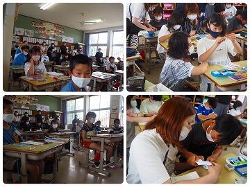 また、授業によっては、保護者のみなさんにも参加いただき、一緒に縫い物をしたり、子ども達が作成した工作に風を当てて飛ばしてみたり、ご協力いただきました。