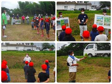 まず田植えの前に、美土里ネット宮崎の方から田んぼは稲を育てるだけではなく、自然災害防止にも役立っていること等を教えていただきました。
