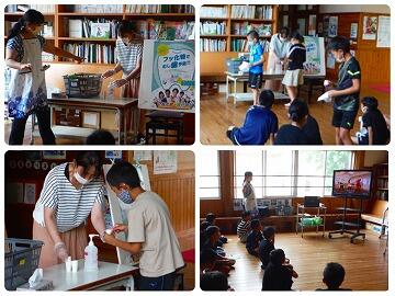 6月24日(木)6校時、4年生はわくわく広場で養護教諭と一緒にDVDを見たり、水を使用して洗口の練習をしたりして、手順等を確認しました。