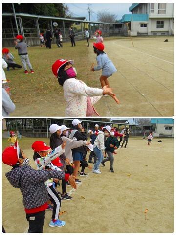 グループごとに、ジェスチャーゲームや絵しりとりゲーム等をして遊びました。床に置いたマーカーを上向きにするチームと下向きにするチームの2チームに分かれて、数を競うゲームをしているグループもありました。どのグループも6年生が優しく声をかけながら楽しんでいました。