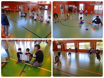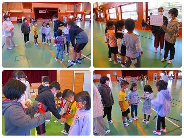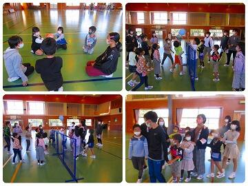 グループごとに、ジェスチャーゲームや絵しりとりゲーム等をして遊びました。床に置いたマーカーを上向きにするチームと下向きにするチームの2チームに分かれて、数を競うゲームをしているグループもありました。どのグループも6年生が優しく声をかけながら楽しんでいました。