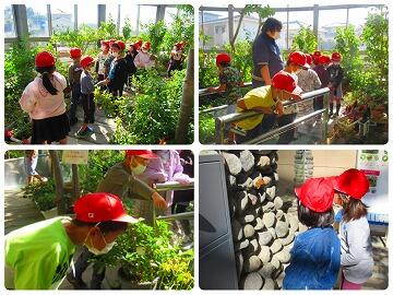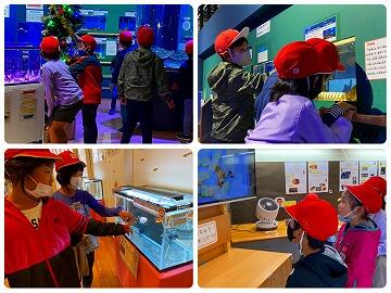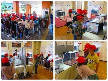 最初に、大淀川学習館に行きました。学習館の方の話を聞きながら、水槽の中の魚を見た」り、花や蝶を探したりしました。一時間という短い時間でしたが、子ども達は「興味津々」で見学していました。