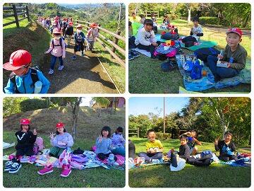 次の垂水公園では、「弁当の日」で作った弁当をお友達と食べてから、ブランコや滑り台等で楽しく遊びました。