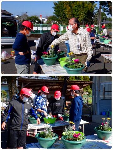 園芸装飾教室は、花の寄せ植えではなく、石等も配置して庭の植木園芸に近いものを鉢の上で再現するとの事でした。今回植える花等の説明をしていただき、実際に植えながらご指導いただきました。
