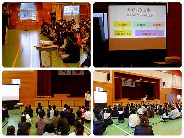 また、各担当の先生からは、まず、「凡事徹底 のじりっこ」について、廊下や階段等を移動する時の留意点、次に、トイレや運動場の工事に伴う、トイレの使用場所や下校時に使う校門の変更等についてお話がありました。