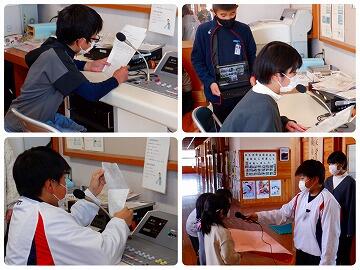今回はGIGAスクールサポーターの田上さんに協力いただき、給食委員会の児童のみ「わくわく広場」と放送室に集まり、他の児童は各教室のタブレットPCを利用して参加しました。