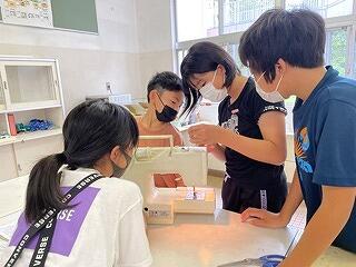 理科の勉強で電池の回路図の勉強を終え、学習で使った車を体育館で一斉に走らせていました。学習をいかして電池のパワーが最大限出るつなぎ方をして、ビュンビュン走らせていました。一番早いのは誰の車でしょうか?