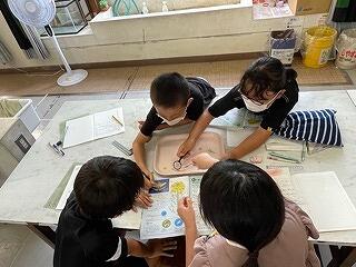 5年生は理科で花のつくりを勉強していました。アサガオの花を分解して、おしべやめしべなど、調べ記録していました。6年生は算数科の統計の授業で、分布をしらべていました。高度な内容でした!