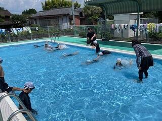 3・4年生は水泳の学習をしていました。ビート板を股にはさんだり、背中に浮き輪乗せたりしながら学習を進めていました。今日も暑かったので、みんな気持ちよさそうでした!