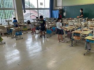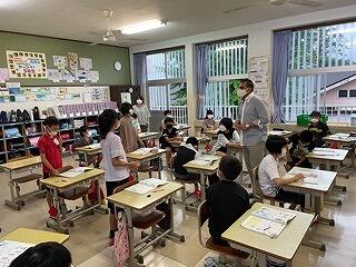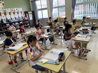 1年生は夏休みの生活について課題やきまりを確認していました。2年生はまとめのテストをしていました。