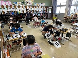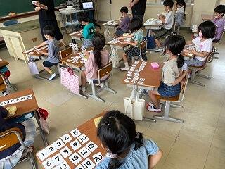 1年生はカードを1~20の順に並べる学習をしていました。きめられた時間で並べようと張り切って取り組んでいました。