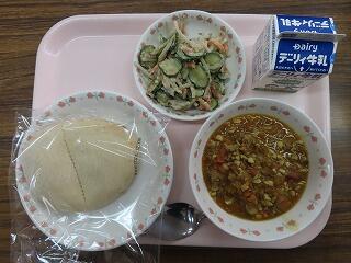 ピタパン、ドライカレー、ごぼうサラダ