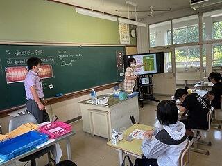 6月16日(金)、6学年は歯磨き指導を行いました。学級担任と養護教諭でTT(ティームティーチング)で授業を行いました。自分の歯を鏡で見て、歯茎の傷み具合をしらべ、その後、歯を磨くことの大切さについて説明を聞きました。そして、正しい歯のブラッシングの方法を習い、実践してミュータンス菌を除去しました。歯磨きの後は、歯がとてもきれいになり、舌で触るとつるつるする!と嬉しそうでした。野尻小は経営ビジョンに「むし歯治療率100%」を掲げています。これから、今日の学びをいかし、正しい歯磨きをして、むし歯予防に努めてほしいです。