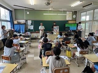 6月29日(木)、5年生が六月灯の歴史について学びました。講師として、六月灯祭り実行委員会から2名の方にきていただきました。授業では、六月灯とは何か?いつ頃から始まったのか?何を願って行われるのか?灯籠に何をかくのか?神社との関係は?等々、一つひとつ丁寧に教えていただきました。今年度、六月灯の祭りが野尻小の体育館で数年ぶりに7月15日に開催されます。子どもたちも、保護者、地域の皆様も、みんな楽しみにしています。毎年、5年生が六月灯の歴史を学ぶことで、地域の伝統行事を受け継ぐことの大切さや地域を愛する心、地域の方々に対する感謝の気持ち、、が育っています。六月灯祭りそのものが、小林市の教育で目指す「自立」「貢献」「感謝」につながっています。