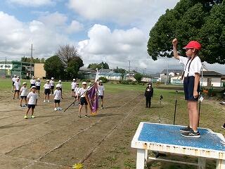 9月25日(火)、第2回目の全校体育を運動場で行いました。まず、開会式終了後からエール交換までの動きを確認しました。団長からの「〇団!集合!」のかけ声の後、各団ともに基準の児童に集まり、列を乱さないで、団のテントの位置に駆け足で移動し、着団もスムーズにできました。その後はエール交換でしたが、団長を中心にリーダーがきびきびと動き、相手の団や学校に向けて、エールをおくる練習を行うことができました。「フレ~、フレ~!〇〇!」の団長やリーダー、団員の声、そして手拍子が運動場中に響き渡っていました。そして、最後に閉会式の練習をしました。成績発表、優勝旗授与の代表児童の動きや、全員での校歌斉唱など、みんな真剣に練習することができました。体育主任が繰り返し、スローガンにある「野尻っ子パワー」の言葉を使ってみんなを鼓舞したり、褒めちぎったりする姿に感化されて、児童はやる気満々で時間いっぱい練習に臨むことができました!