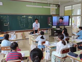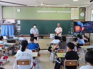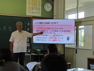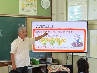 6月13日(木) 東麓の「六月灯」祭りは7月13日(日)。今年もその準備が始まりました。毎年、野尻小の子どもたちは灯籠を作ったり、当日のお祭りに参加したりと、「六月灯」を楽しんでいますが、その「六月灯」についての詳しい由来などはほとんど知りません。そこで、六月灯実行委員会の会長でもある大畑さんを外部講師としてお招きし、「六月灯の歴史」について学びました。