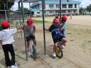 6月14日(金) 南九州地方では6月10日に梅雨入りしたものの、今週は雨もほとんど降らず、昼休みには運動場で子どもたちの元気な声が聞かれました。子どもたちは昼休みになると水筒を肩からさげて、一目散に運動場へ。虫を捕まえるのに一生懸命な子、一輪車の練習に励む子、ドッジボールを楽しむ子、それぞれですが、野尻っ子は元気よく遊んでいます。