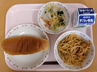 スパゲティは子どもたちの人気メニューです。麺がもちもち、とてもおいしかったです。海藻のサラダはほんのり海の風味がしました!