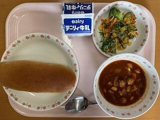 チリコンカンはピリ辛で、ちょっぴり大人の味でしたが、子どもたちには大好評でした!サラダもシャキシャキしておいしかったです!この大小2つのおかずに、今日も椎屋農園のニンジンが使われていました!おいしいはずです!