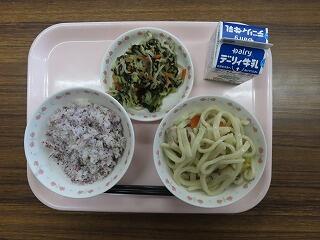 減量ゆかりごはん、けんちんうどん、磯の香和え