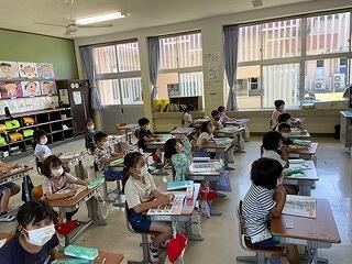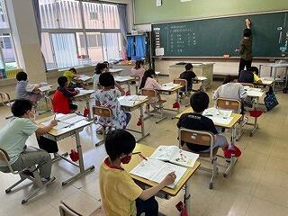 3年生は社会科の学習で地図記号の学習をしていました。たくさんの地図記号があることに児童はびっくり!でも、楽しそうにノートに書いて覚えようとしていました!