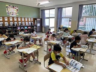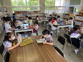 2年生はしずか~に、図書室で本を読んでいました!野尻小の1人あたりの年間貸出冊数の目標は150冊です!クリアーできそうです!