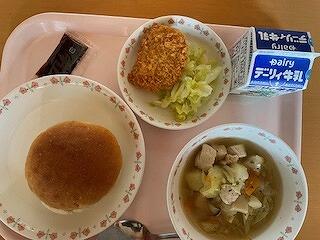 具沢山の味噌ラーメンは寒い日にもってこいのメニューでした。ザブザブといただきました。サラダも中華風の味付けで、いつもとは一味ちがいました。今日もとてもおいしかったです。