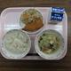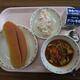 麦ごはん、マーボー豆腐、春雨サラダ   マーボー豆腐は、しっかりと固めの木綿豆腐に挽き肉、タケノコ、ニンジン、ニラなどが入っています。ニラの風味のおかげで、とても味がよくご飯がすすみます。サラダは、春雨のシャキシャキした食感とキャベツやキュウリなどの野菜との相性がよいです。どちらもとても美味しいです。