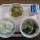 麦ごはん、煮しめ、小松菜のごま和え     煮しめは鶏肉、厚揚げ、コンニャク、里芋などの具材にたっぷりと味がしみ込んでいてとても美味しいです。小松菜のごま和えは、小松菜の食感にごまの風味が加わって、こちらもご飯とよく合います。