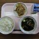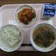 麦ごはん、茎ワカメのスープ、チャプチェ   チャプチェは元来、韓国の宮廷料理であり、春雨を使った伝統的な料理なのだそうです。豚肉やキャベツ、ニンジン、ニラなどの具材と春雨の食感のおかげで、ごはんとよく合います。スープは茎ワカメに加えて、つくね、豆腐、エノキなどが入っていて、こちらもとても美味しいです。