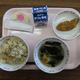 麦ごはん、わかめスープ、焼肉   わかめスープには、ニンジン、豆腐なども入っていて優しい味わいがあります。焼肉には、豚肉に加えてキャベツやエリンギなども入っています。今日も、どちらもごはんによく合う美味しい給食です。