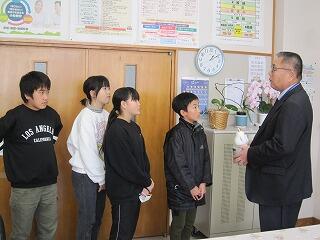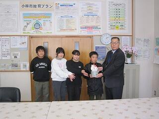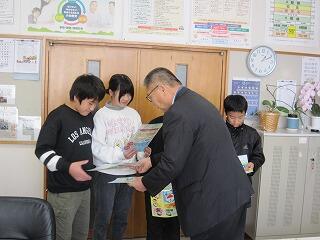 運営委員会の6年生から、社会福祉協議会へ、集まったお金を手渡しました。