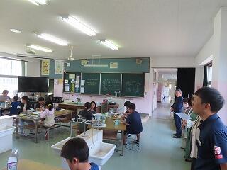 1年生の教室で、カニを育てています。
