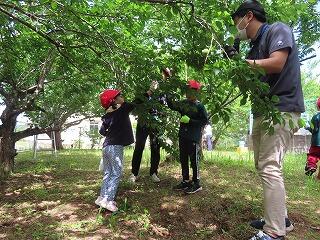 1年生が梅ちぎりに挑戦しました。