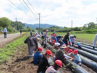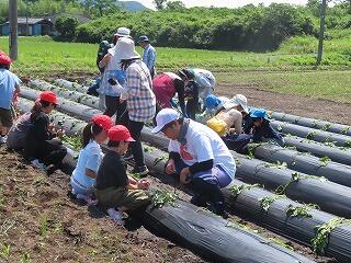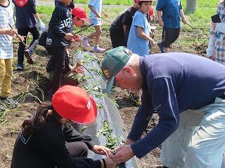 地域の方々に教えていただきながら、さつま芋の苗を植えました。